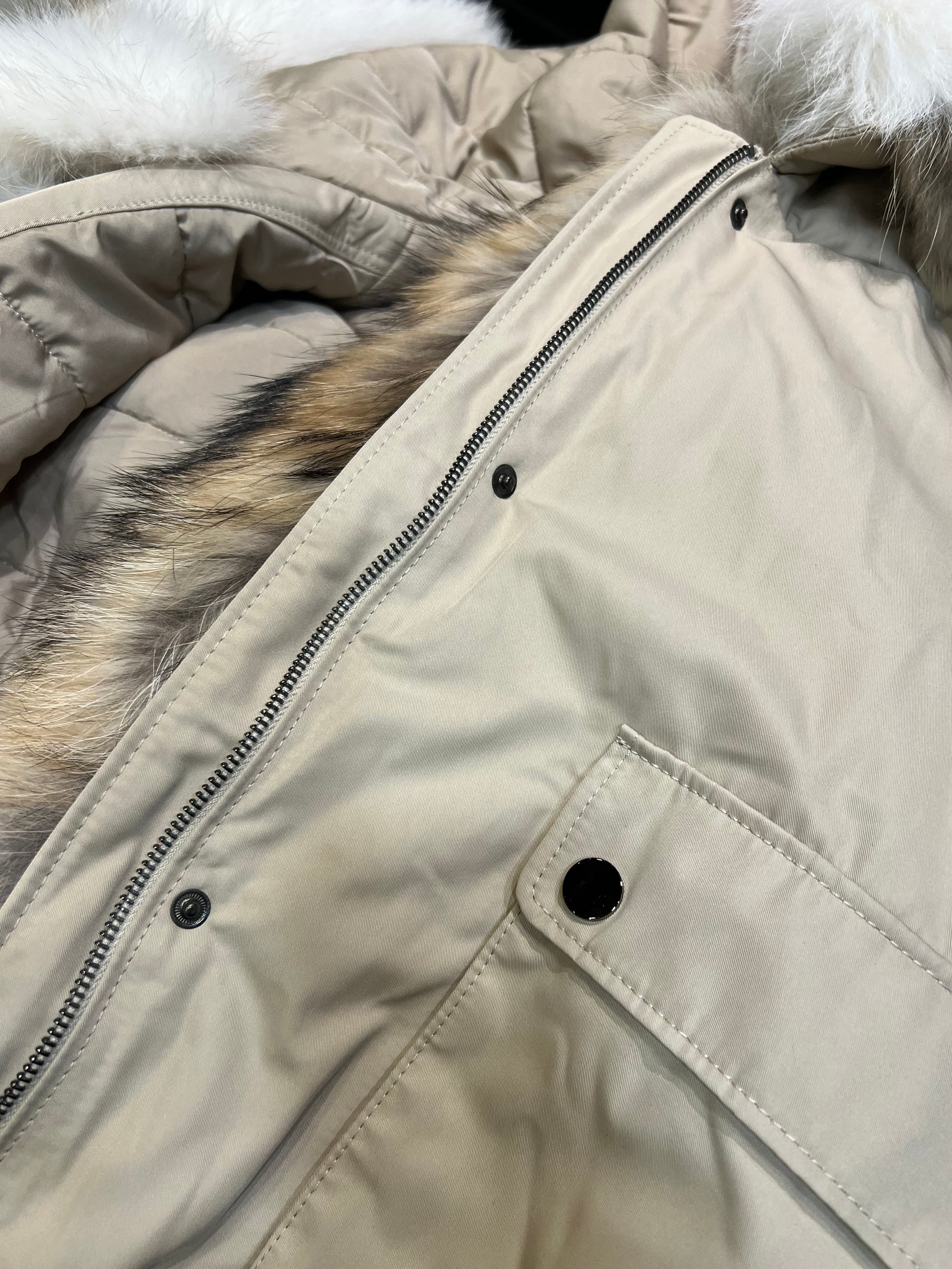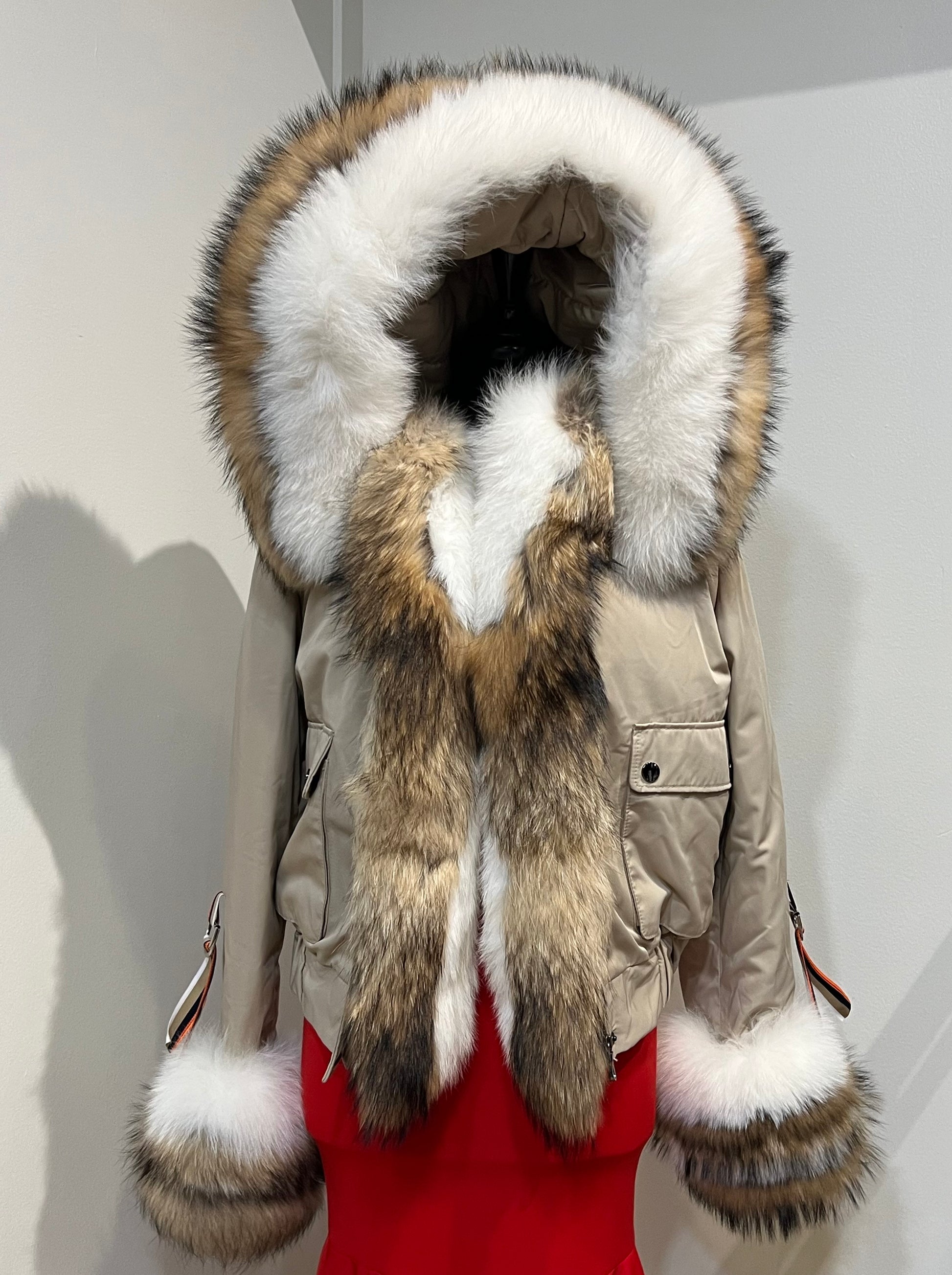 The image showcases a bomber-style jacket featuring a plush fox fur collar and cuffs, a statement piece that perfectly balances sophistication and warmth. When it comes to choosing the best coats for women, there’s a wide range of styles and materials to consider — each offering unique benefits depending on the season and occasion.