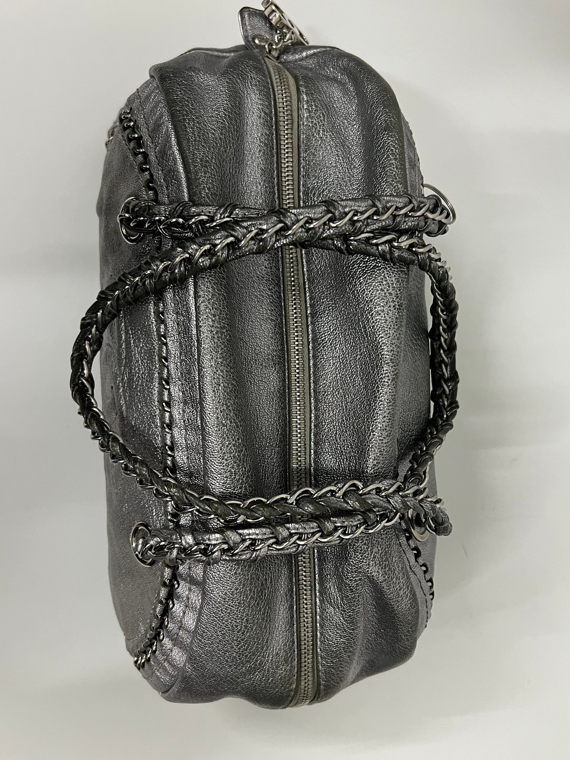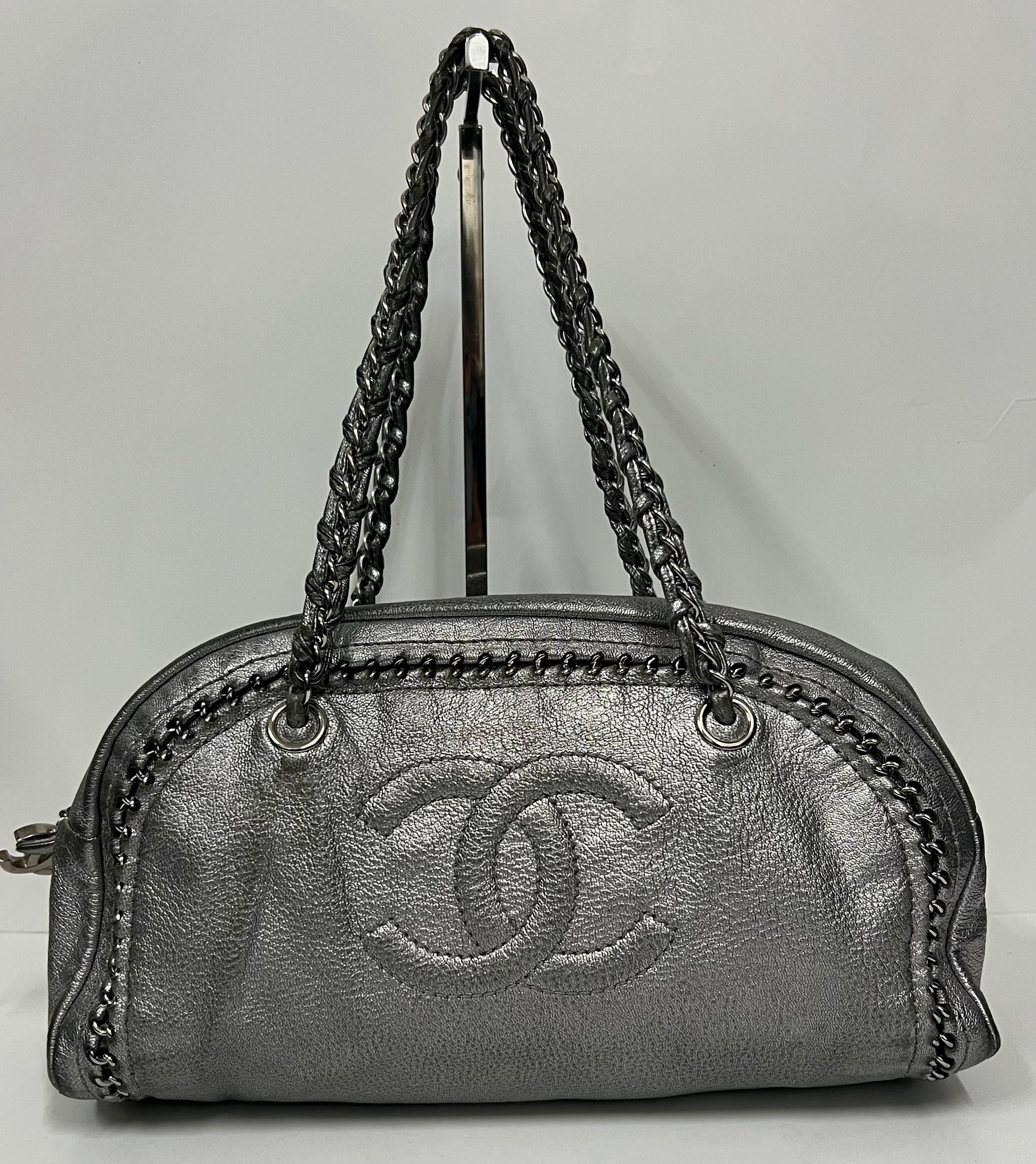 Chanel Chain Shoulder Bag – Silver Leather with Silver Hardware