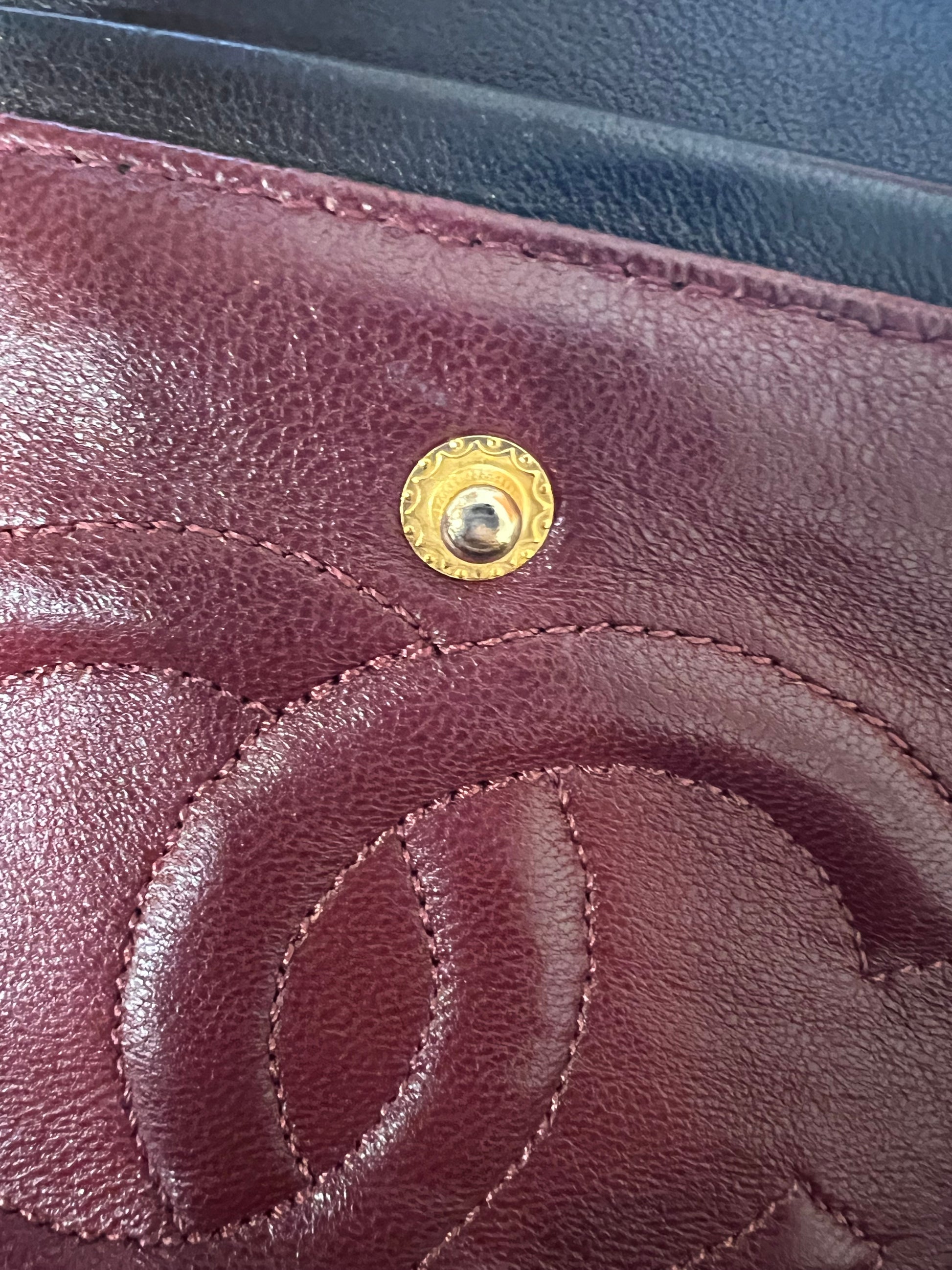 This vintage Chanel Classic Flap Bag, crafted in black lambskin leather with burgundy leather lining, is a true collector’s piece dating back to circa 1986–1988. Featuring the signature gold-tone hardware, interwoven chain strap, and iconic CC turn-lock closure, this bag embodies the timeless sophistication of Chanel’s heritage design.